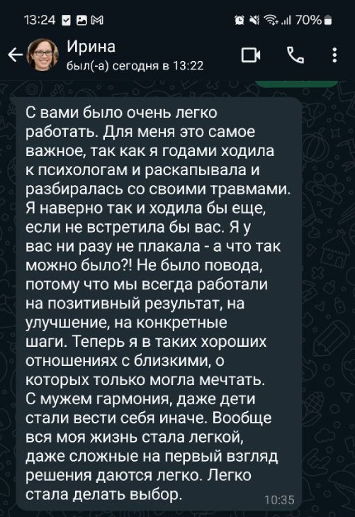 За несколько встреч по системе ПсихоЛогика она получила больше реальной ясности и конкретных изменений в жизни, чем за все предыдущие годы работы с другими специалистами.